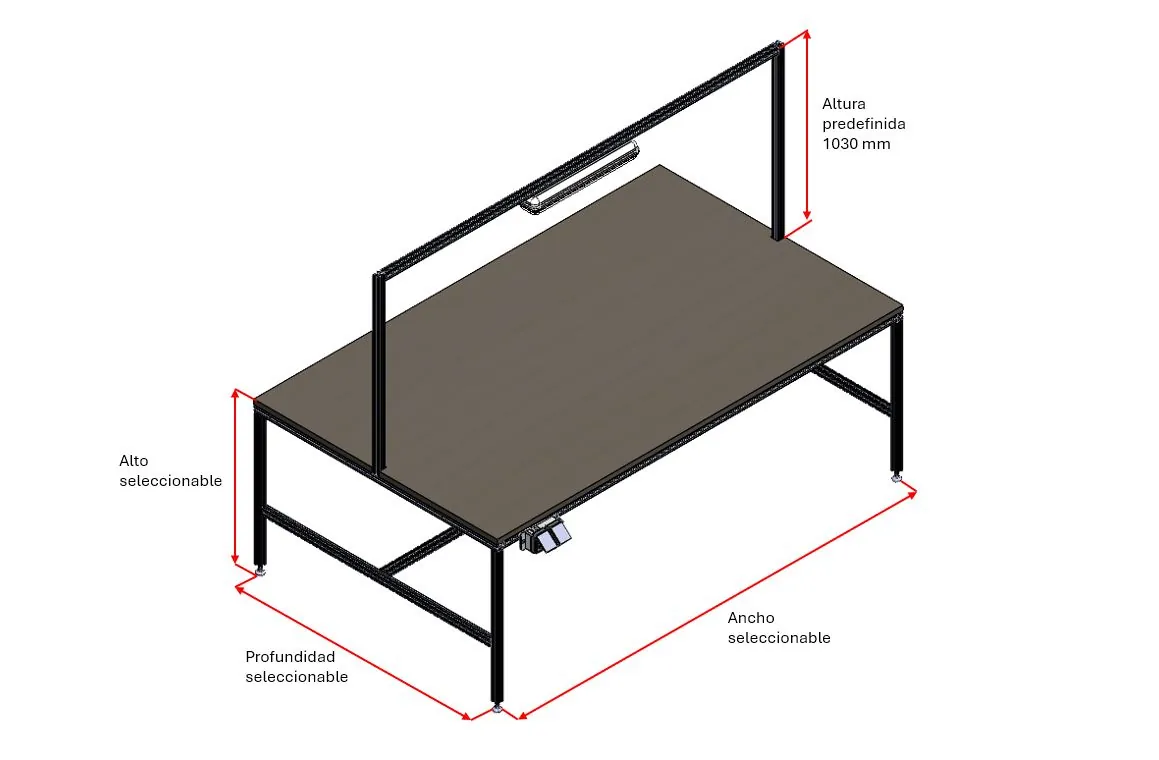 Una mesa de aluminio ranurado que aporta durabilidad y flexibilidad de montaje.